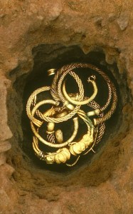 The Snettisham hoard contained number of of finely worked neck torcs including the Great Torc. One of the finest examples of early British metalwork yet discovered.